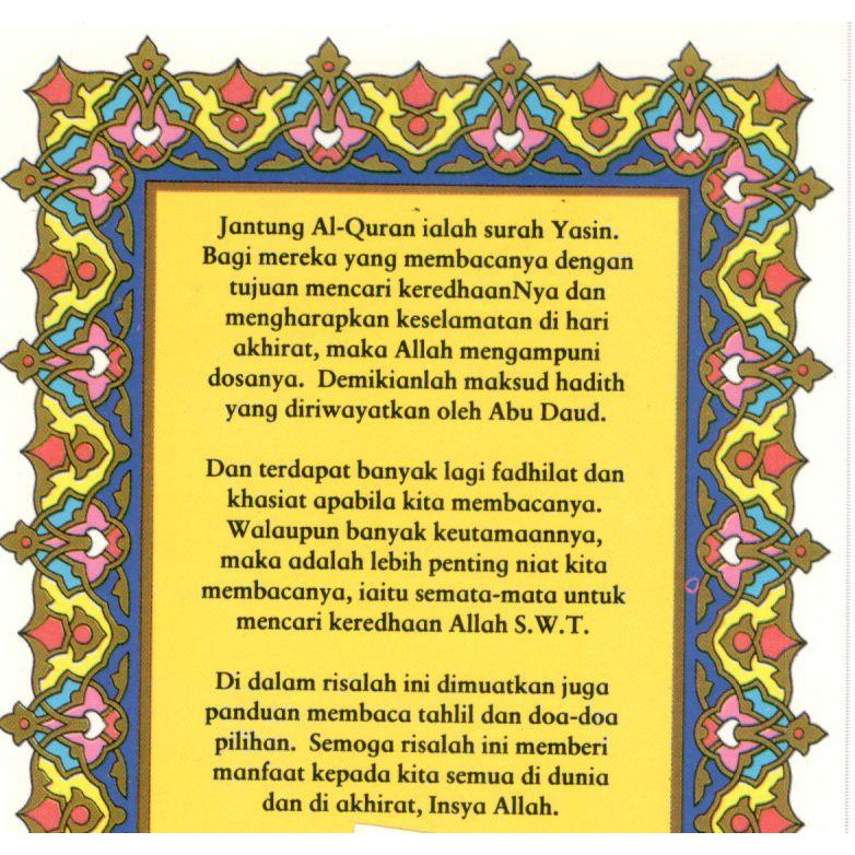 Panduan ini merangkumi tatacara baca yasin, adab, dan kelebihan mengamalkan yasin. Doa selepas membaca surah yasin. Wirid & doa selepas solat fadhu. Doa, #doamalamjumaat, #doalepasbacayasinsegala puji bagi allah s.w.t., tuhan yang mentadbir seluruh alam, pujian yang melengkapi segala . Surah yasin berserta bacaan rumi teks tajwid berwarna.